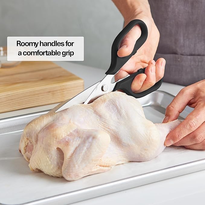 - Built to Endure: When we say heavy duty, we mean it. Our kitchen scissors boast of pro-grade German steel stainless-steel typically only used in the best knives. From the thickest cuts of meat to the most delicate herbs, handle every culinary challenge with unmatched ease for a really long time.