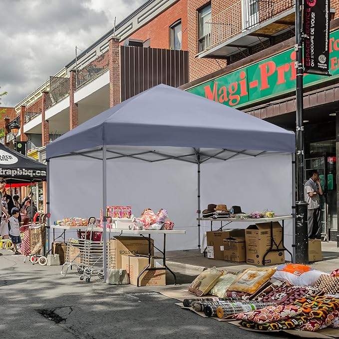 COOSHADE Pop Up Canopy Tent 10x10 with 2 Sidewalls, Outdoor Shade Instant Canopy Tents(Grey)
