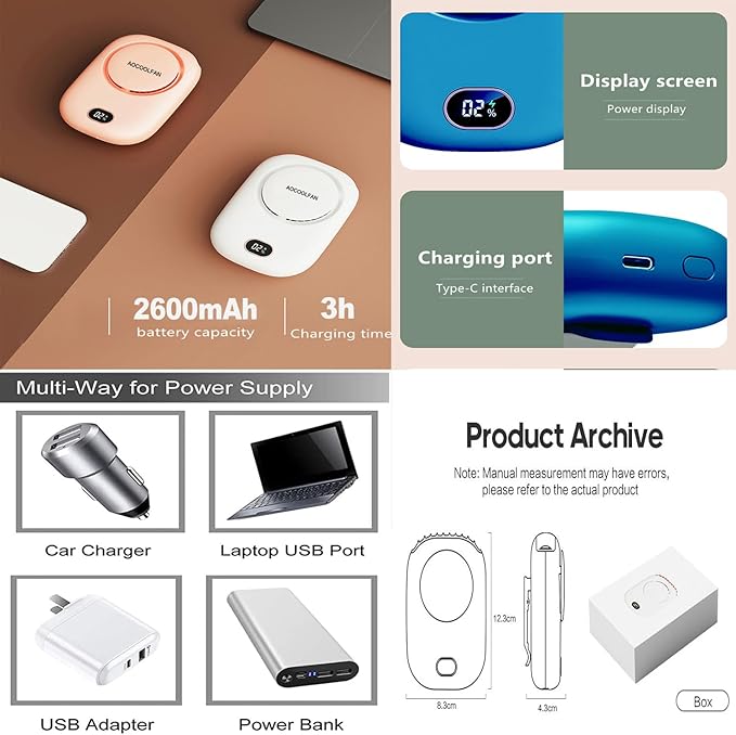- USB Rechargeable: The personal fan is USB rechargeable, it comes with a charging cable, you can charge it from a regular outlet, computer, or any other device via a USB port. A full charge takes 3 hours