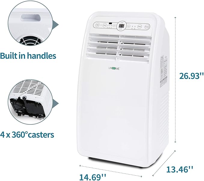 Uhome 2024 New Portable Air Conditioner, 8000 BTU Compact AC Unit with Cooling, Dehumidifier, Fan, Remote Control and Window Mount Kit Included, White