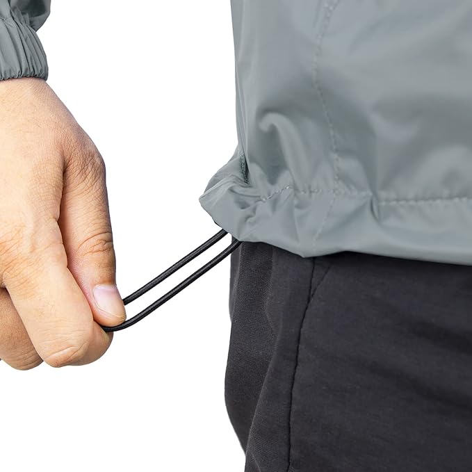 - 【Unique Design】Lightweight lite rain jacket elastic cuffs prevent the rain drops to the cuffs; Adjustable drawcord hood to prevent yourself from being wet; The hem contains elastic rope for warmth and keep you dry. Suitable for casual wear, outdoor sports, outdoor work, traveling, cycling, hiking, climbing, fishing, camping, hunting.