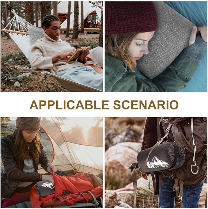 - 【Memory Foam Travel Pillow】Our premium travel camping pillow is fully adaptable to all kinds of trips, like camping, fishing, backpacking, hiking, beach, festival, or other outdoor activities. Whether you're sleeping on a hammock, a plane, a beach, in a car, RV, or under a tent, hotel for a "Power Nap" in the office or on the couch, our travel pillow will give you a great night's sleep wherever you lay your head.