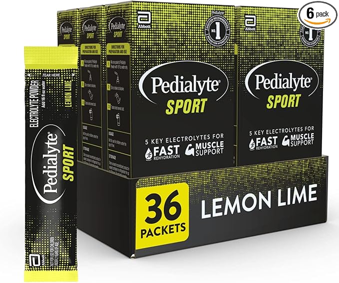 Pedialyte Sport Electrolyte Powder, Fast Hydration with 5 Key Electrolytes for Muscle Support Before, During, & After Exercise, Lemon Lime, 0.49-oz Packets (36 Count)