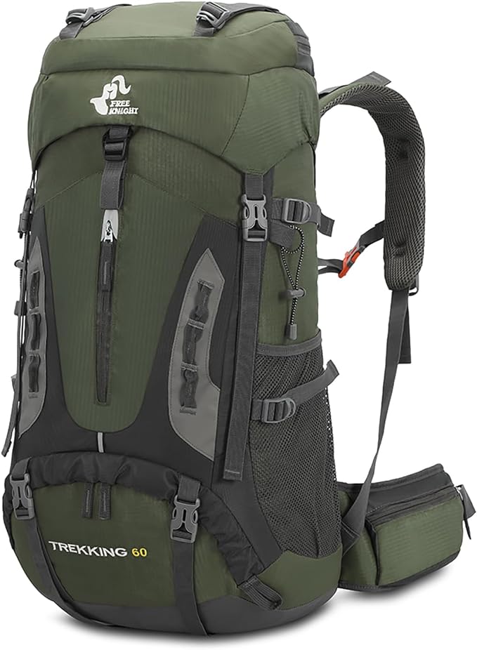 Bseash 60L Hiking Camping Backpack with Rain Cover, Waterproof Large Capacity Outdoor Sport Travel Daypack Climbing Touring (Army Green)