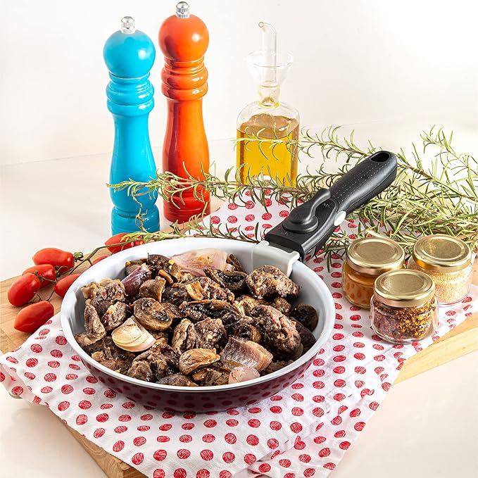 - Small Cooking Set: The pan and pot set can be on all stoves, gas, electric, and induction, with equal heat transfer throughout the pot and the pan for proper cooking. It is coated with high-tech ceramic, enabling use in the oven at high temperatures, with a high-tempered glass lid and silicone rim.