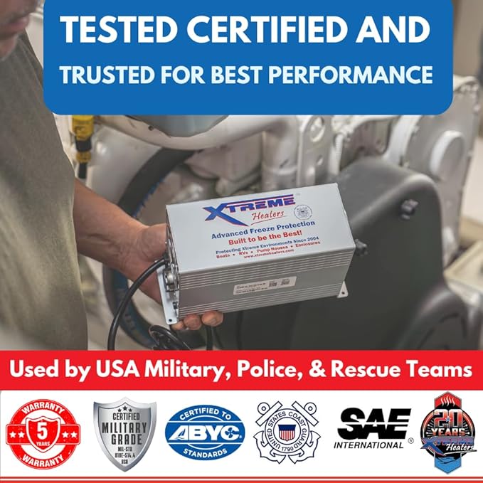- Stay Safe > Our freeze protection heater is made for harsh, enclosed engine compartments. Exceeding Coast Guard, ABYC & MILSPEC certifications for heat, cold, moisture, & vibration. Our heaters have been in boats, rvs, etc for over 20 years now keeping them protected!