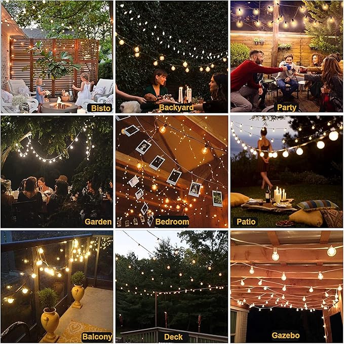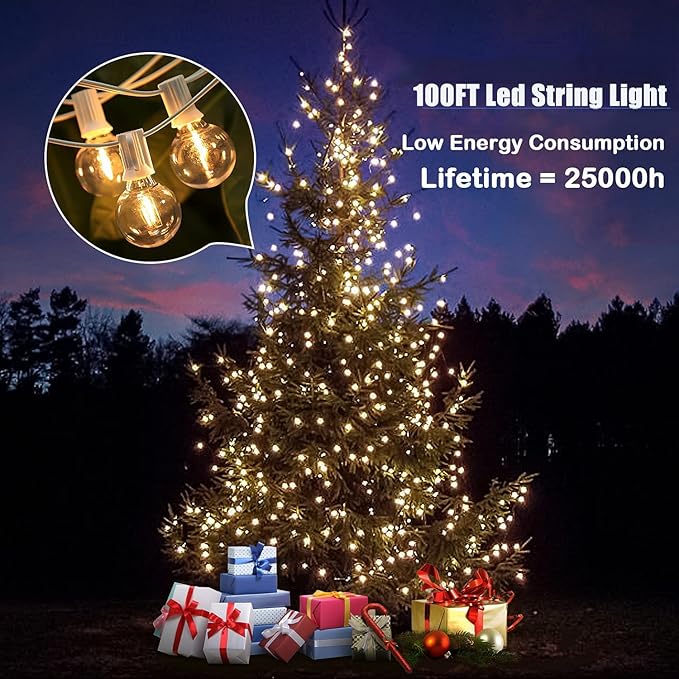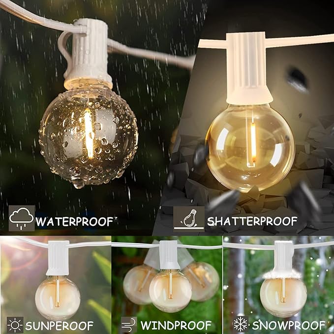 - Easy-to-install exterior string lights - LED String G40 is very light, all LED bulbs screw into the sockets, no additional installation required, you can just straighten them or easily wrap them in a tree, fence or tent.