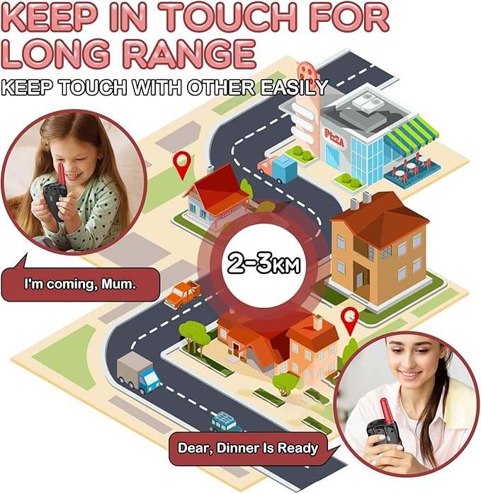 - [Clear Sound and Key Lock Function]: Our Kids walkie talkies have cool call alert function, crisp and smooth sound quality with adjustable volume level. Equipped with key lock function, it is not easy for children to modify the channels to enhance the fun of parent-child interaction.