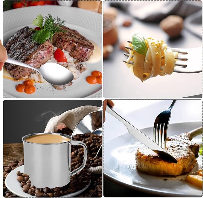 - ✅【Healthy and Safe】Made of food grade and long lasting stainless steel, this tableware is rust and scratch resistant for durability and reliability, plus it comes with a rag for easy cleaning, helping to quickly and easily do well on the go for manual cleaning and storage, and also dishwasher safe.