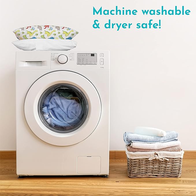 - Dreamy Toddler Pillowcase: Crafted from 100% cotton, the included toddler pillowcase fits snugly and comfortably around the pillow. Featuring an envelope pillowcase enclosure, it's a breeze to slip on and off for washing. Appreciate the softness and quality of the pillow, which is hypoallergenic and holds its shape well after multiple washes. Plus, it gets softer with every wash, ensuring your little one's comfort night after night.