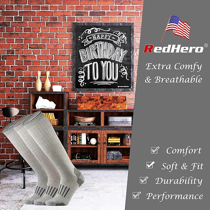 Merino Wool Over the Calf Socks for Men Hiking Hunting Ski Snowboarding Knee High Boot Warm Thick Cold Weather Winter