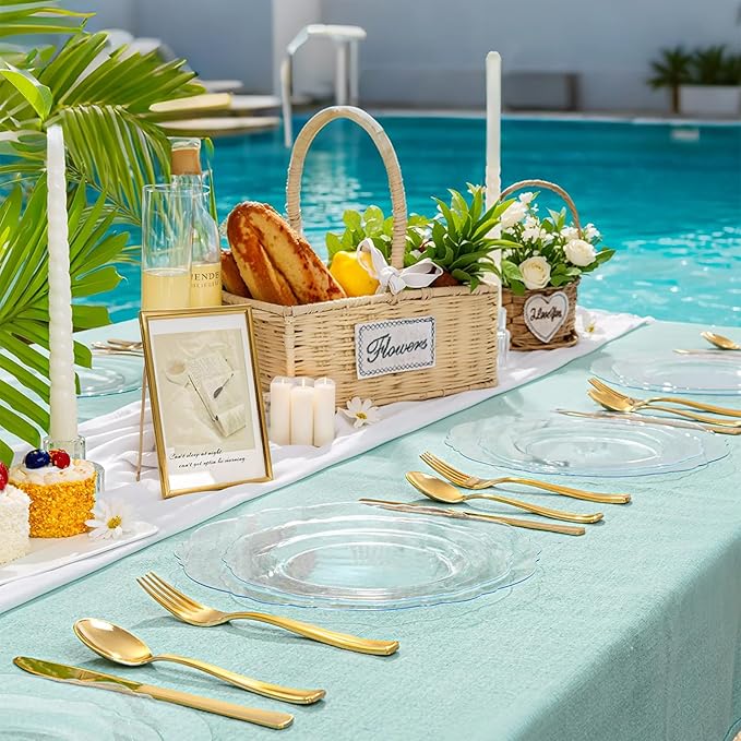 - PERFECT FOR ANY OCCASION: Clear disposable plates are a perfect option for weddings, engagements, birthdays, parties, Mothers day, Business Reception,etc. The wide rims prevent food from falling and avoid embarrassment.
