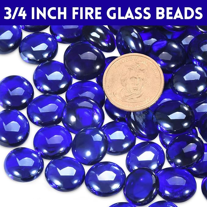 Cobalt Blue Fire Glass for Propane Fire Pit, Fireplace and Outdoor Decorative, Firepit Rocks 20 Pounds, High Luster 3/4 Inch Round Glass Beads