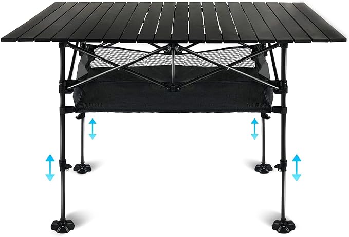 LEADALLWAY Adjustable Height Aluminum Camping Table Folding Portable Outdoor Table with Large Storage Organizer and Carrying Bags Big Foot Upgrade Collapsible Picnic Table 47(L) x22(W)