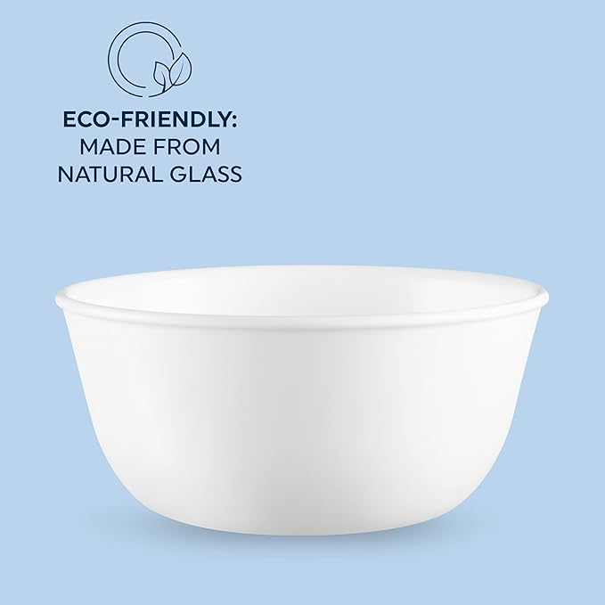 Corelle Vitrelle 28-oz Soup/Cereal Bowls Set of 6 Chip & Crack Resistant Dinnerware Bowls for Soup, Ramen, Cereal and More, Triple Layer Glass, Winter Frost White