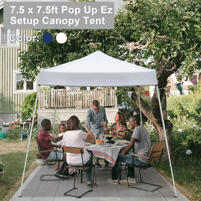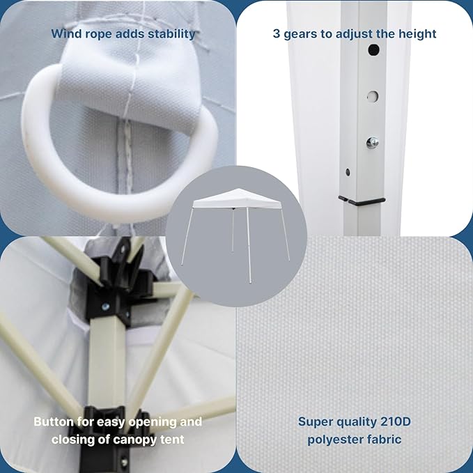 - 【OVERALL DIAMENSION】7.9'x7.9' (2.4m*2.4m)base slant leg outdoor canopy tent can hold up to 5-7 people. 3 heights to adjust. From gound to tent top: 7.3ft/7.6ft/7.9ft