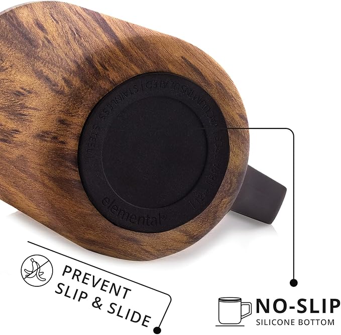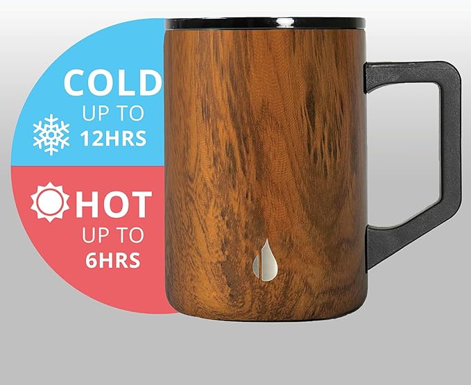 Elemental Insulated Coffee Mug - Triple-Wall Stainless Steel Summit Travel Cup for Hot and Cold Drinks - Thermal Coffee Mug with Lid and Handle for Camping, Office & Travel 16oz - Teakwood