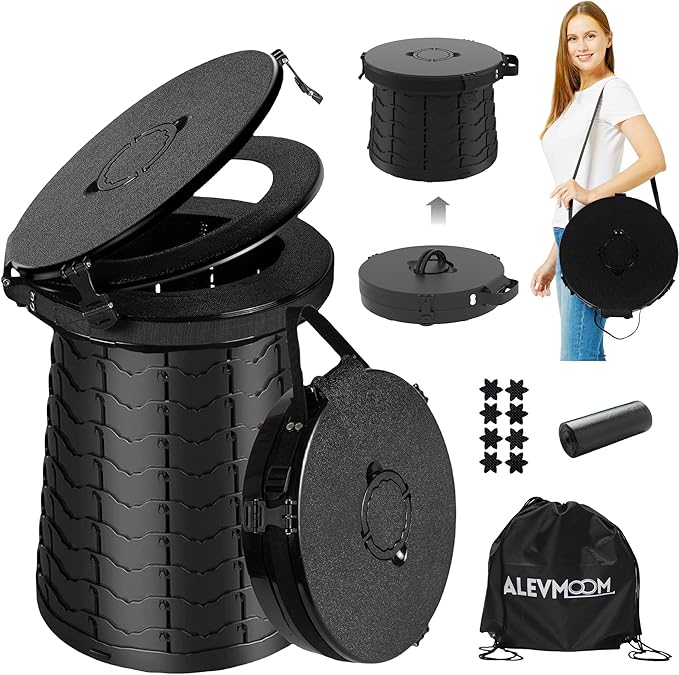- 【Widely Applicable】This ALEVMOOM portable toilet serves not only as an emergency toilet but also as a trash bin, stool, and side table, making it ideal for backpacking, camping, fishing, and hiking. not Assemble , super easy and quick!