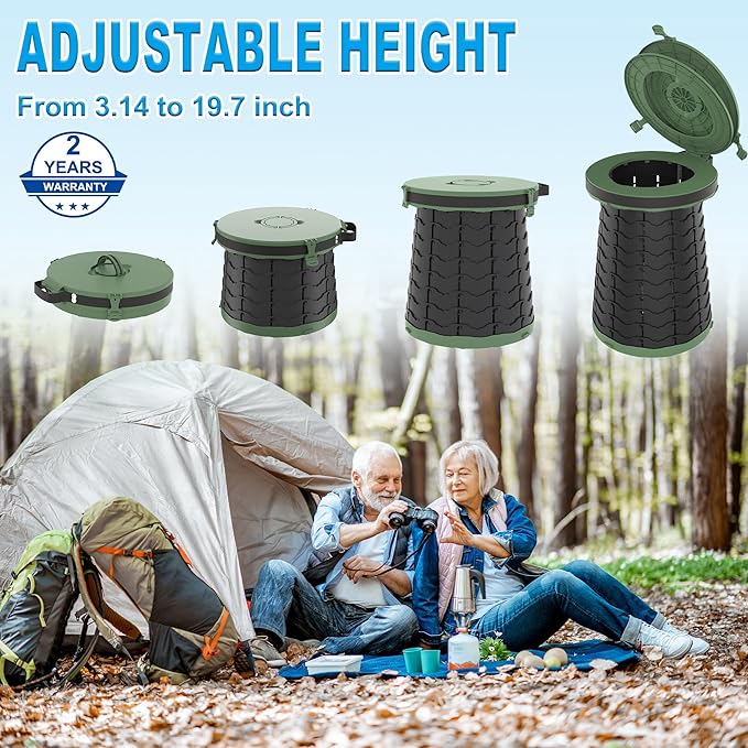- 【Adjustable In Height 】The height of the portable toilet can be adjusted from 3.3 inches to 19.7 inches by a collapsible design with springs and buckles. Whether elderly or children, men or women, you can always find a comfortable height when using this camping toilet.