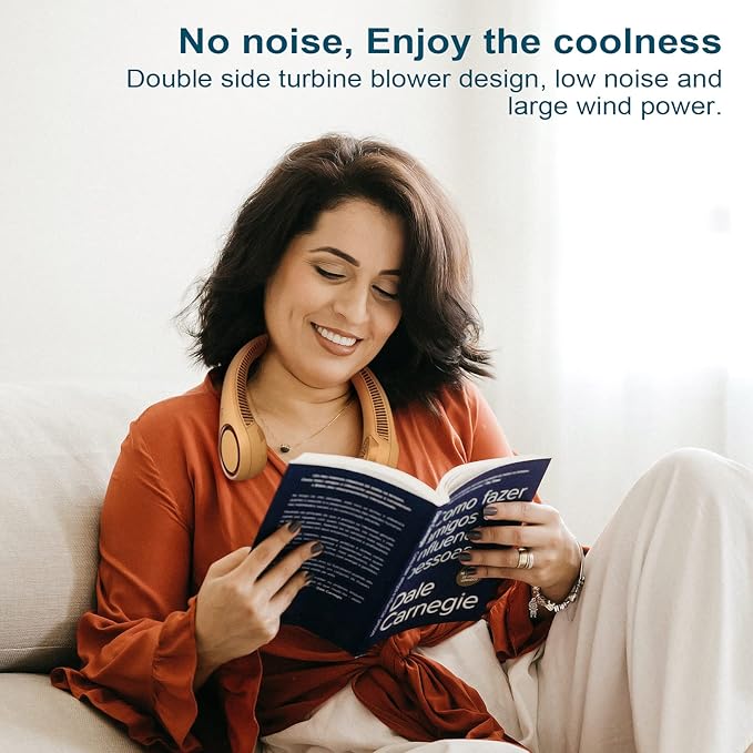 - Low noise and comfort: Excellent upgraded technology with multi-stage air duct design greatly reduces fan noise. Made of ABS and silicone, it is natural to wear, comfortable and skin-friendly. Wearing the neck fan can also study or work without worry