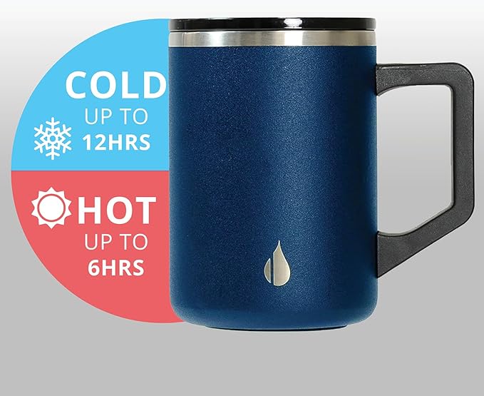 Elemental Insulated Coffee Mug - Triple-Wall Stainless Steel Summit Travel Cup for Hot and Cold Drinks - Thermal Coffee Mug with Lid and Handle for Camping, Office & Travel 16oz - Navy Blue