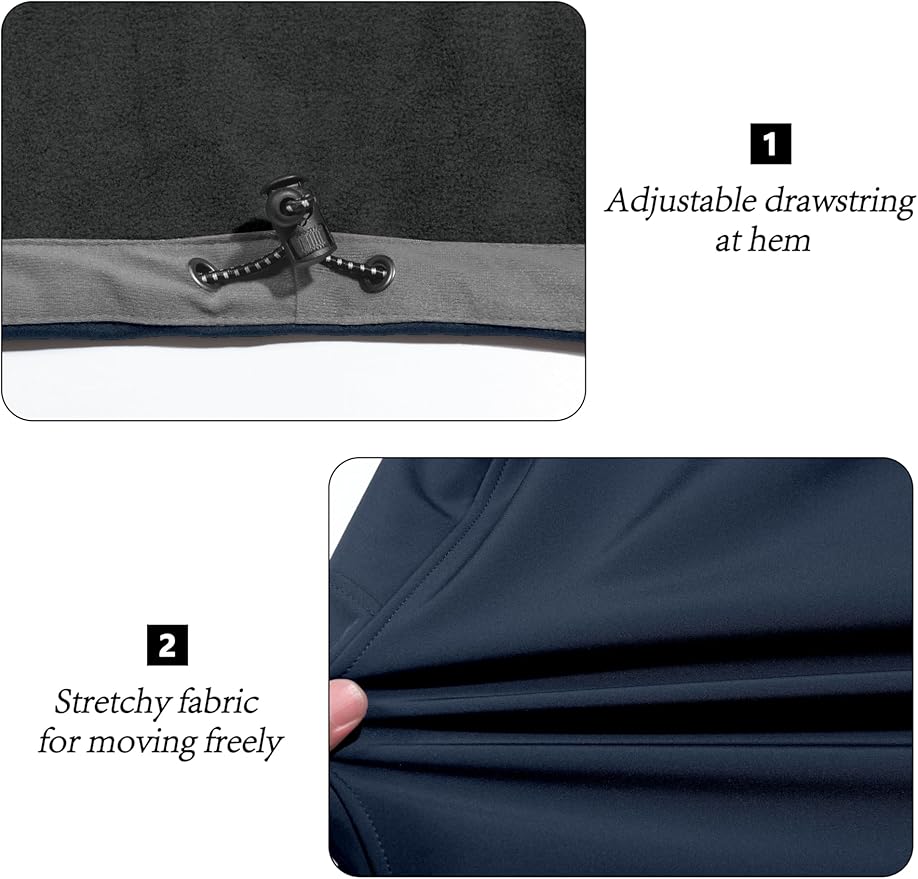 - Windproof & Lightweight ---- Stand neck collar with a wind guard under the zipper and the adjustable elastic drawstring at the hem helps to fit better and seal out the elements as a windbreaker. 3-layered compounding technology but lightweight shell fabric make it durable without being too baggy so that you can wear it out as socially cloth as well as a sportswear