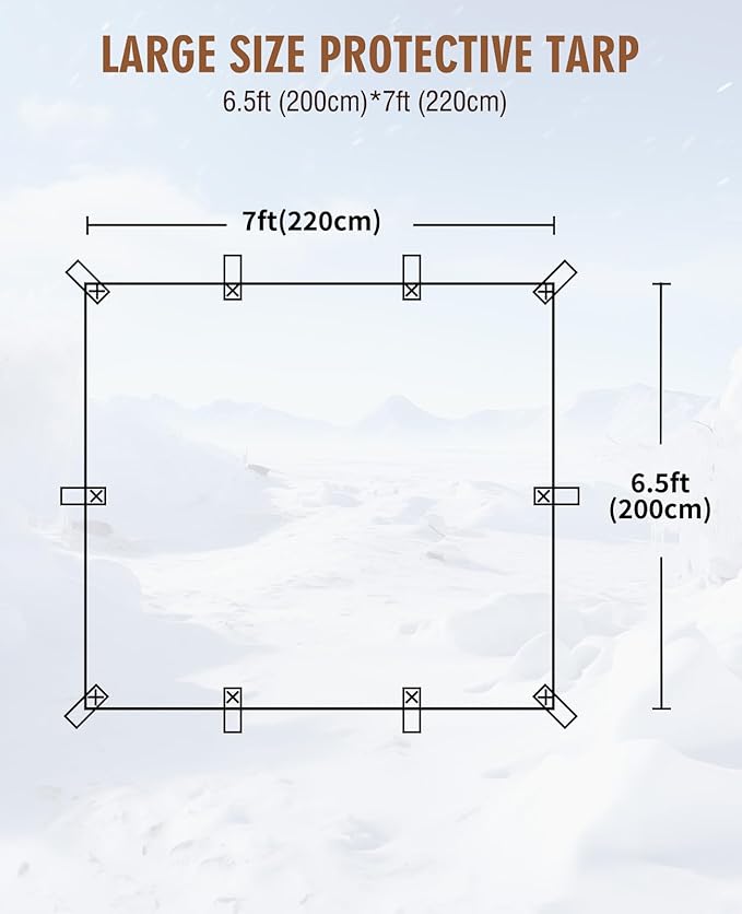 - Heavy Duty Tarp Cover: Size 6.5x7 ft (200x220 cm). HIRALIY Tarps will keep your goods undamaged from rain, snow, dirt, and sunlight. HIRALIY tarp is convenient to carry and frequently use. NOTE: Please measure carefully the size of your item before purchasing to ensure that the tarp is large enough to fully protect your covered things