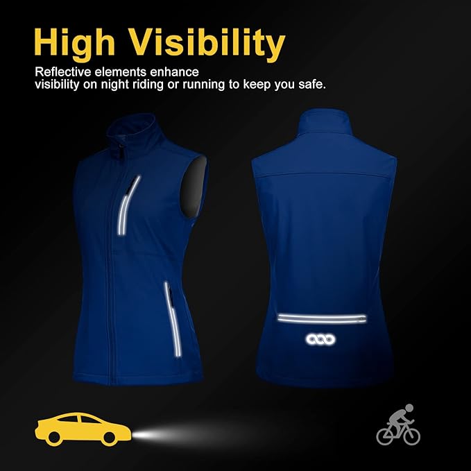 - RUNNING VEST FOR WOMEN WITH REFLECTIVE FEATURES- There's a stand neck collar with a wind guard under the zipper, drawcord hem that help seal out the elements and adjust the fit. It comes with pretty colors with reflective contrast piping that provides high visibility when running at dark.