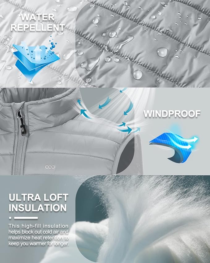 - WATER RESISTANT & WINDPROOF---This 33,000ft lightweight insulated puffer vest for men features ultra loft insulation and wind & water resistant outer shell to provide strong protection against the elements and ultimate warmth & comfort to your body.