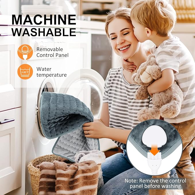 - Super-Soft Fabric & Machine Washable: Double-Sided Design with a skin-friendly material, the plush is finer and the warmth is better. For your convenience, the heating pad is easy to clean and machine washable!
