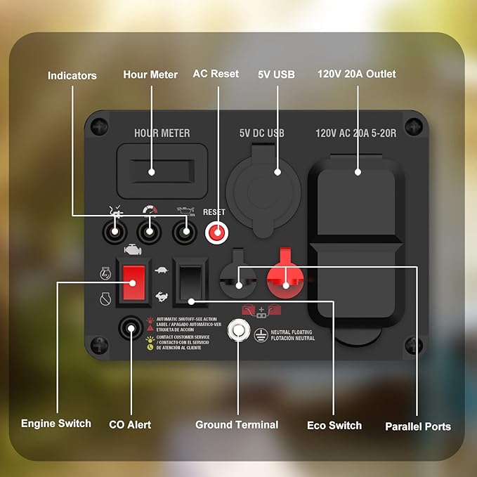 - Multifunction Control Panel & Parallel Capability - Comes with two 120V 20A outlets, one 5V type-A, and one 5V type-C outlet to meet different requirements. With the 3 indicator lights and an hour meter, you can monitor the status of the machine at any time. Simply use a parallel kit to connect two AIVOLT VS1600101 quiet inverter generators together to double your power. (parallel kit not included)
