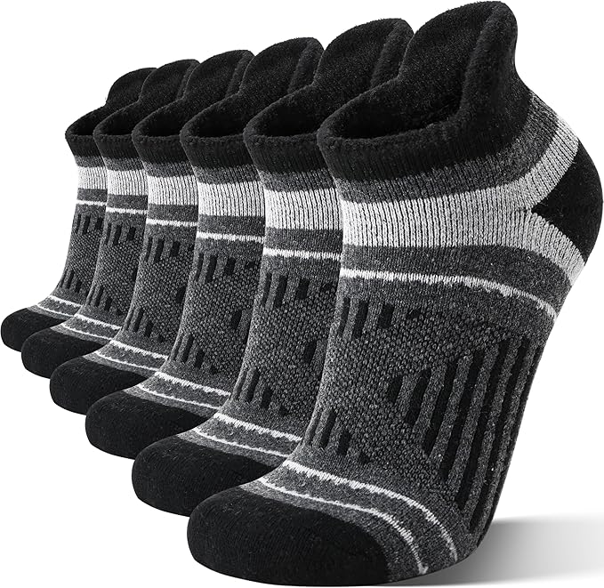 EBMORE 6 Pairs Merino Wool Ankle Hiking Running Socks Compression Support Thick Cushion No Show Socks for Men Women