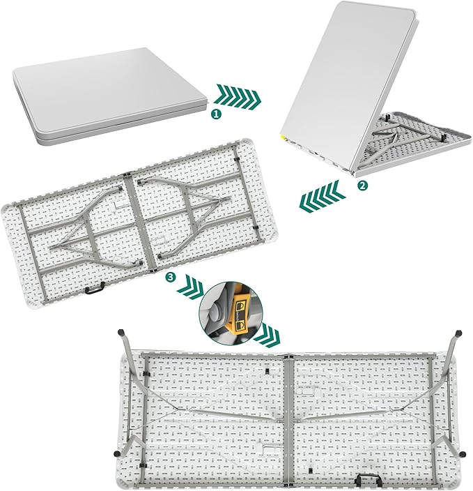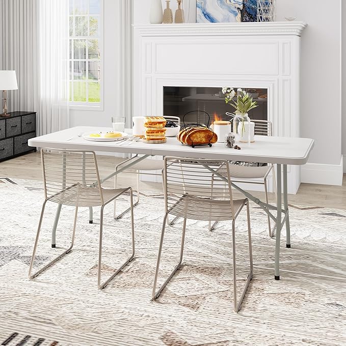- Flexible Use: The simplistic and practical 6 foot folding table is a versatile choice for camping, picnics, parties, etc; Suitable for both indoor and outdoor spaces such as patios, gardens, pool areas, lawns, and more