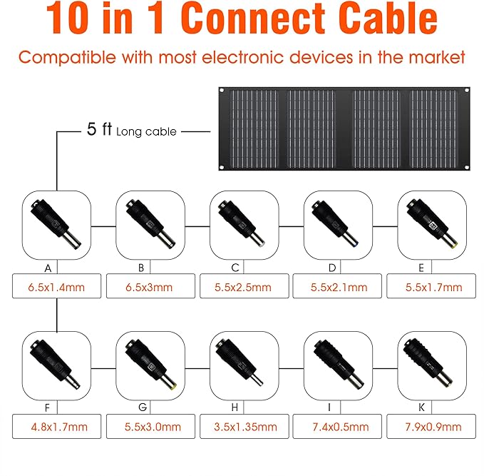 - 【Upgraded 3 Output Ports】The 40W foldable solar panel designed with 3 output ports of different type: 1* DC output (18V/2.27A Max), 1*USB-C Output, 1* USB QC3.0. Wherever you are, it can charge your phone, iPad, laptop, mini fridge, camera, GPS, power bank and other devices.
