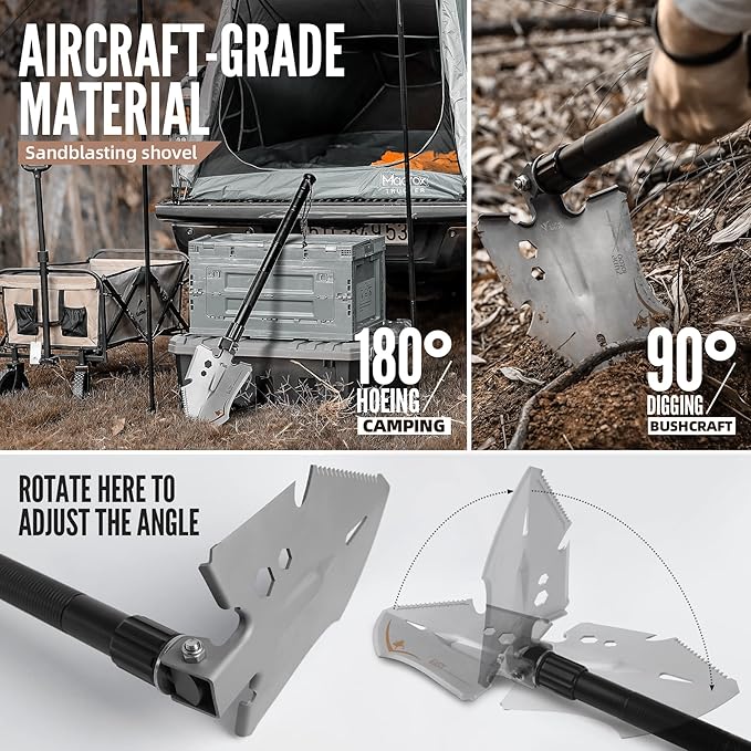 - Military-Grade tactical shovel: Constructed from thickened high-carbon steel (2.3mm at thickest point) with superior rust, breakage, and wear resistance - making it ideal for wilderness survival or vehicle emergencies.
