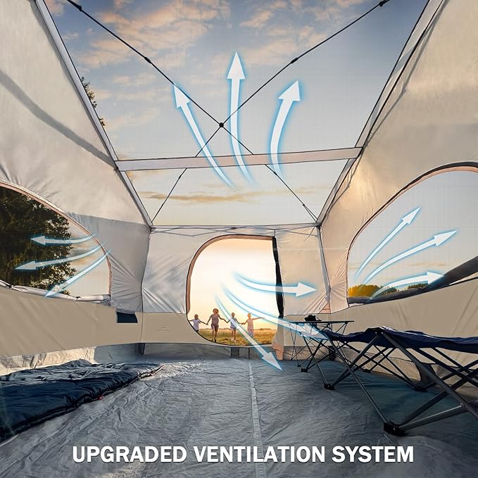 - Thoughtful Design: Our canopy cube tent add-on offers excellent ventilation, ensuring a cool and comfortable environment inside. With 3 large screened windows and an oversized screened door, air flows through freely, aided by a vented roof. The e-ports provide easy access for an extension cord. Plus, there are convenient storage pouches around the perimeter for your belongings