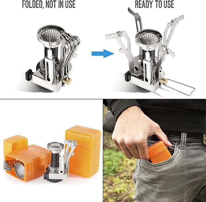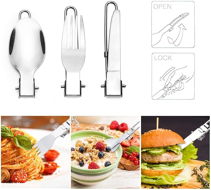 Peidesi Camping Cookware Mess Kit, Portable Camp Stove Pots and Pans Set, Carabiner, Folding Knife, Fork Spoon Kit, Carry Mesh Bag, for Backpacking