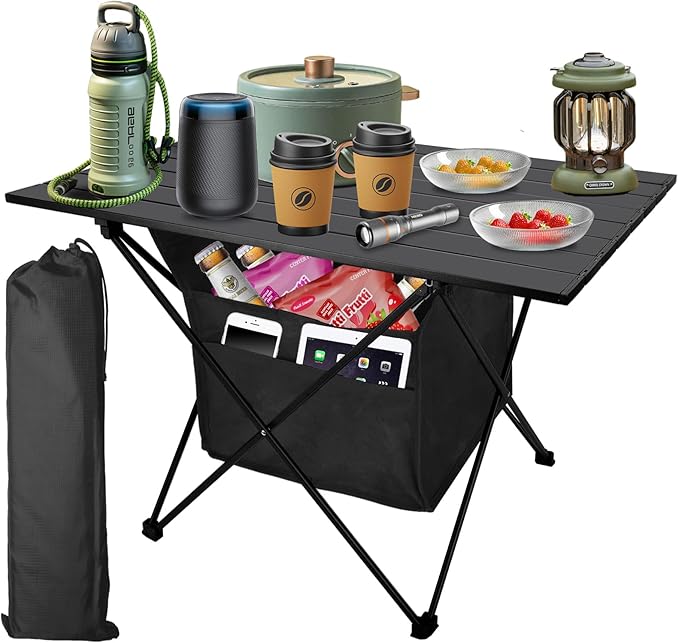 - Make A Camp Table in Seconds: Fashion camping folding table can pop up and fold very easily. No tools needed! When you are traveling, take a small bag and install a table with storage anytime, anywhere. Enjoy your leisure time in seconds