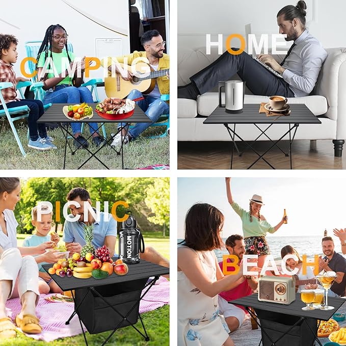 - Traveling Partner: The portable folding tables with good-enough height and size for drinks and snacks. It can meet the table you need out. As a beach table, grill table, mini table, laptop table, tent table, coffee table, picnic table and card table