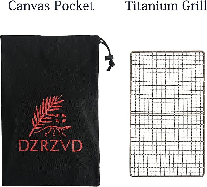 - 【EASY TO USE & CLEAN】Ready to use right out of your backpack,DZRZVD Titanium Grill lets you never accidentally dump food into the fire again.The titanium material makes it easy to clean,and the matching canvas pocket makes it easy to organize.