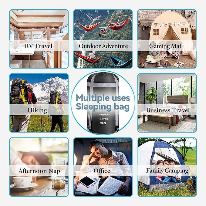 - Convenient Storage: Each sleeping bag comes with a compression sack with shoulder strap. The biggest advantage of our compression bag is its large capacity, which makes it easy to store and carry. It fits into an ultra-compact bag in seconds, no folding or rolling, saving you even more time!