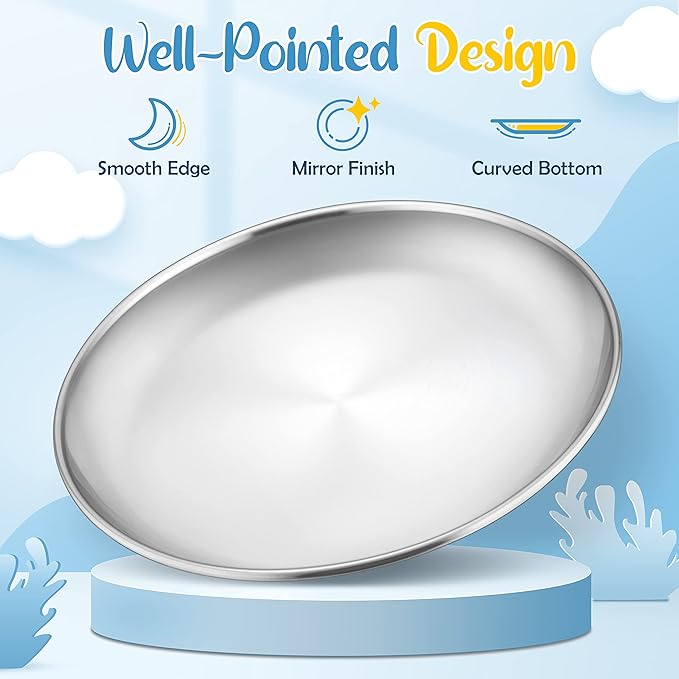 - 【GREAT FRO CHILDREN】 Smooth round edges without rough spot won't hurt children’s hands and lips, Mirror polished surface makes food dish more exquisite, Greatly improve children’s appetite, Also the plates are more easier to clean because of the craft, Round bottom design makes them stackable, easy for storage