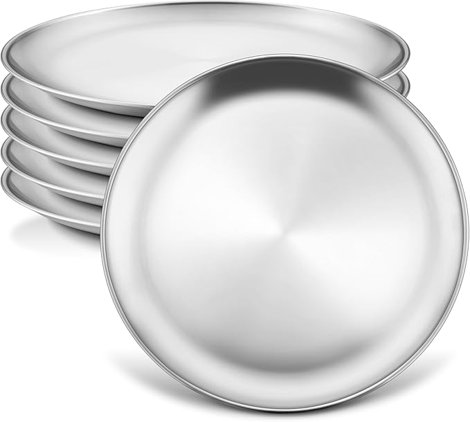- 【SET OF 6 - 6 x plates】 10 x 10 x 0.6inches (26 x 26 x 1.5cm) ,Its metallic look makes it elegant and versatile, Perfect for home daily use, Proper heft, Suitable for feeding, camping, gathering, party, gift, etc