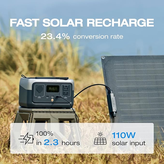 - [Fast Solar Charging] - Use clean, green renewable energy to recharge RIVER 2 power generator in as fast as 2.3 hours with 110W solar input.