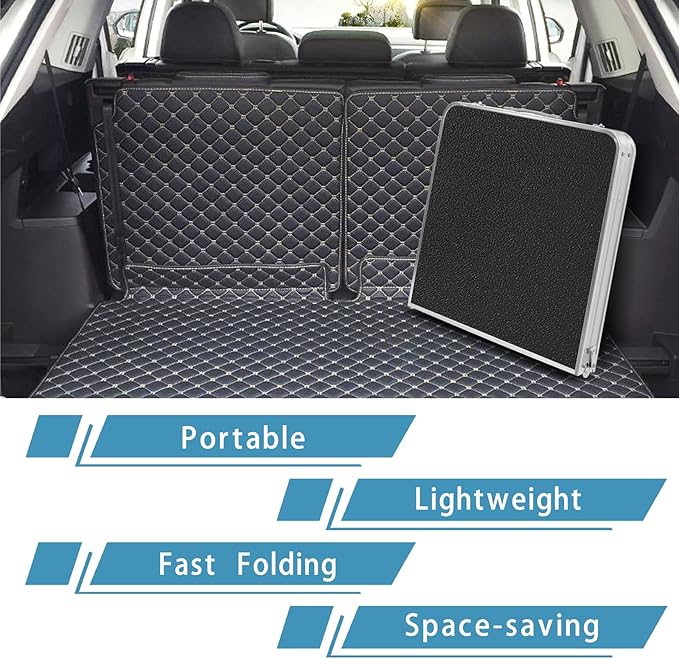 - [Durable portable and sturdy] Density board and aluminum material ensure the high quality of our camping table. The triangular structure and reinforcement measure improve the stability of the table and enable it to withstand the weight of 66lbs, and the anti-deformation wrap also extends the service life of the outdoor camping table.
