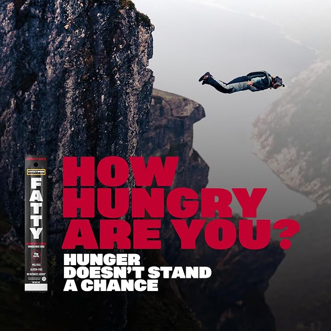 FATTY Meat Sticks, Made with Grass Fed Beef, Pork Raised Without Antibiotics, 11g Protein Per Stick, Honey BBQ, 2 oz. (Pack of 5)