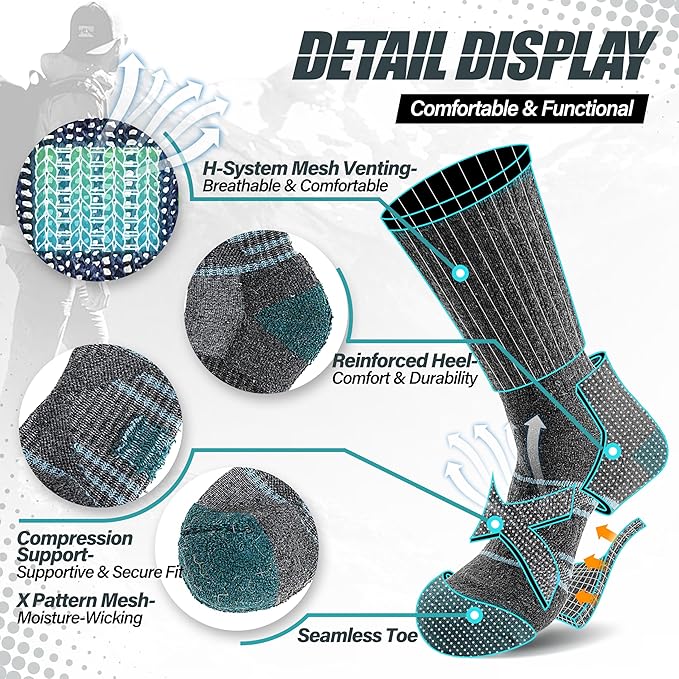 - Gentle Compression Support: With soft elasticity design and compression stripes along the calf and foot arch, these socks provide a snug, secure fit that keeps them in place. This helps your legs stay comfortable and supported, making them ideal for outdoor activities like hiking, climbing, running, and walking