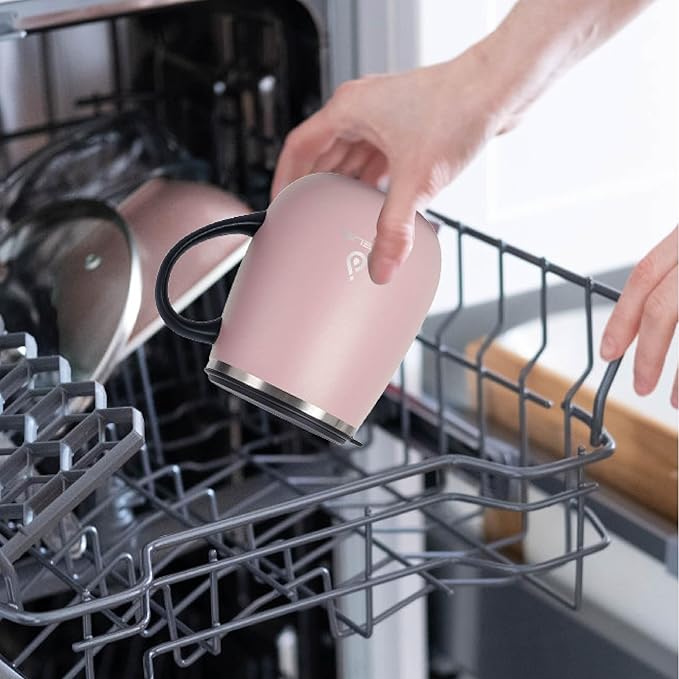 - 【PERFECT CAPACITY】 - This travel mug has a 16oz capacity. Its wide mouth makes it perfect for infusing drinks with fruit or ice and for effortless cleaning. Ergonomic handle on the side for a comfortable grip, making it the great outdoor camping mug and the coffee mug in the office as well.