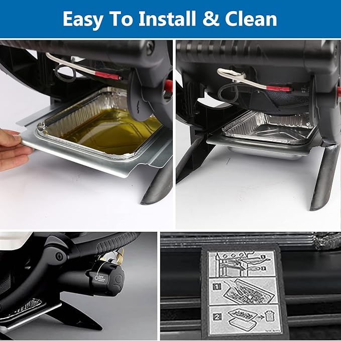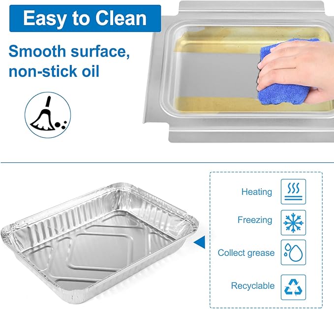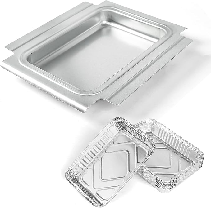 - 【Dimension】 ►Aluminum foil liner 8.66*6.3"(top out measure) Height--1.57" 【Package】Grease Drip Tray 1 pack, Aluminum foil liner 15pack 【Capacity】- Holds 31 oz ►【Good Quality Material】- Made of high quality metal to ensure long-lasting use. Compare with the original parts, heavy duty, with strong corrosion resistance and wear resistance. At the same time, they are harmless to human body and can be safely used