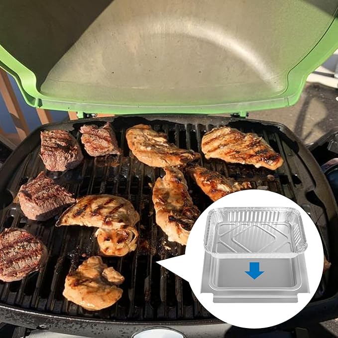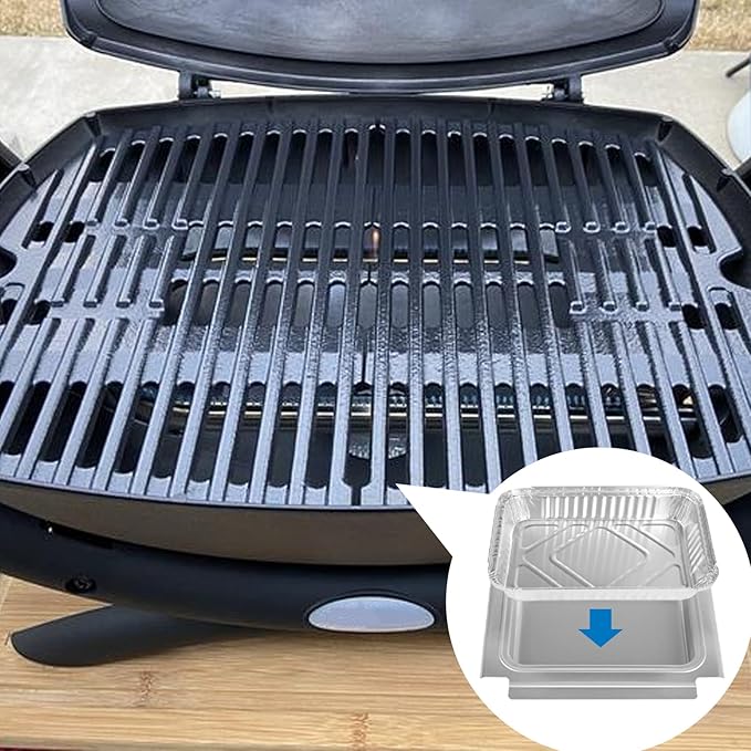 - 【Function】►Aluminum Grease pan Liners same as part number weber 6415 -Easily attached to you Weber Q gas grill for easy grease management►Keep your grill clean and ready for service. Simply insert the foil liner into the greased pan, a simple drip pan can save you from a lot of cleaning. ►Aluminum liners are disposable and recyclable - Collects the grease, easy to clean, also great for cooking side dishes, food preparation, baking cakes